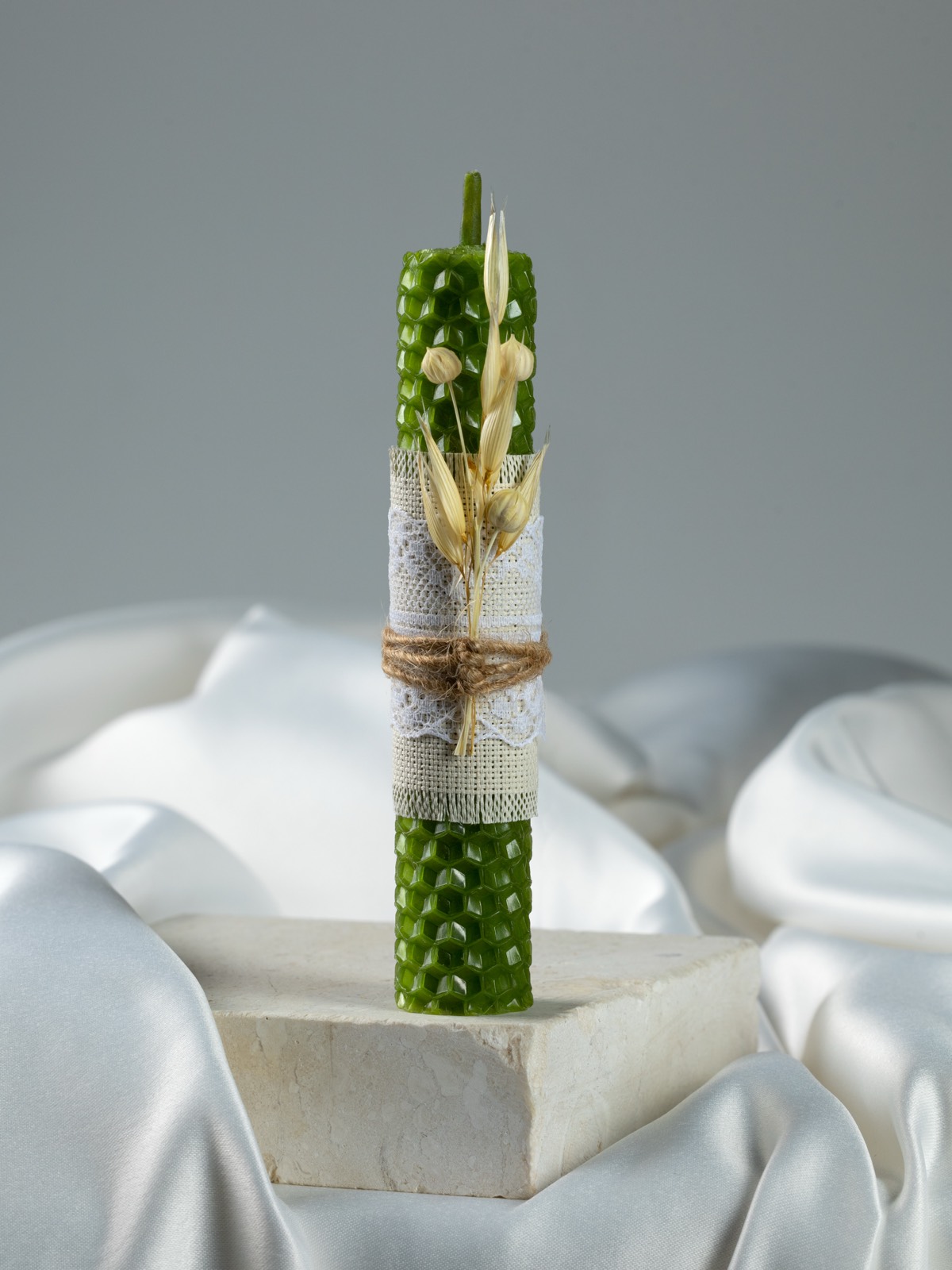 Зеленая свеча из вощины для привлечения денег