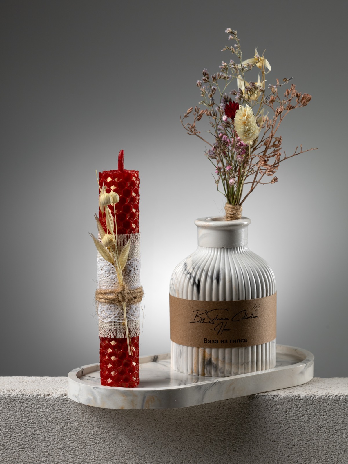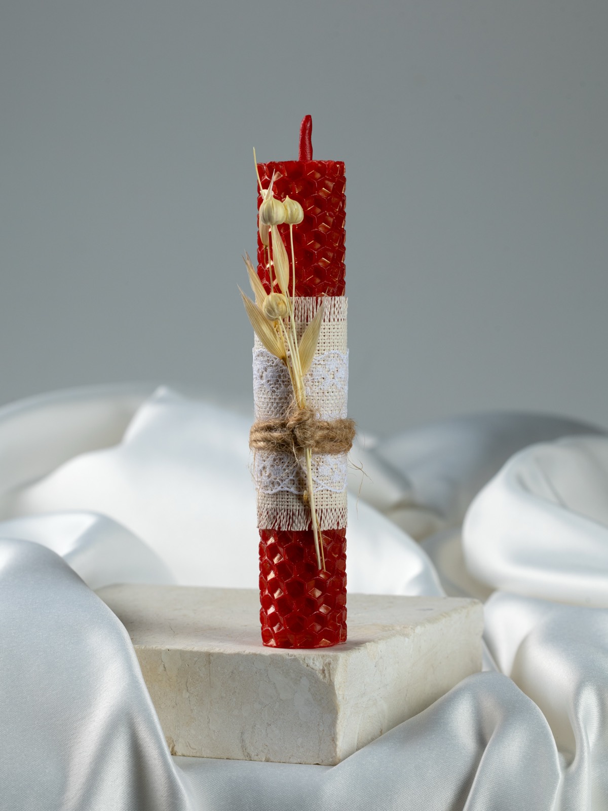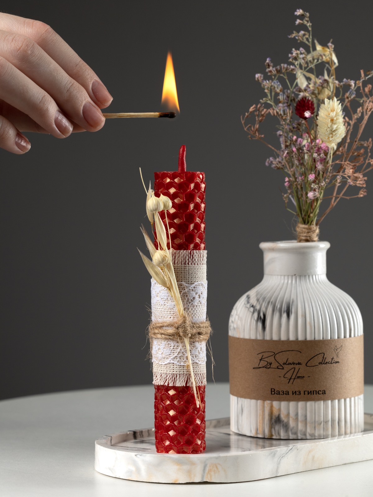 Красная свеча из вощины для очищения пространства и избавления от негатива. В описании Wildberries она подана как программная свеча с сильными заговорами и молитвами, ручной работой и натуральным пчелиным воском. Красный цвет символизирует силу и защиту, а сама свеча подходит для очищающих ритуалов и защиты дома.