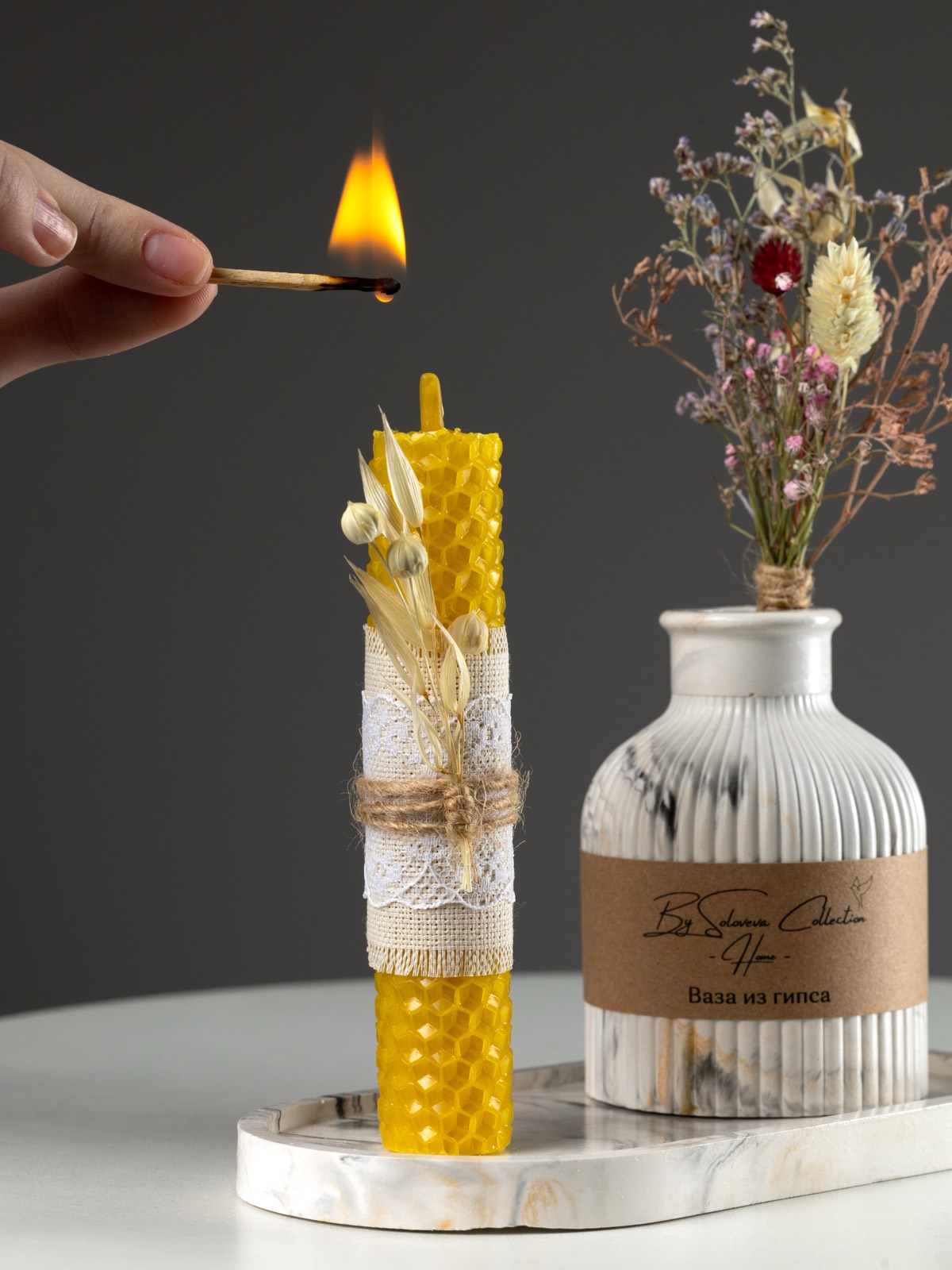 Желтая свеча из вощины для жизненной энергии